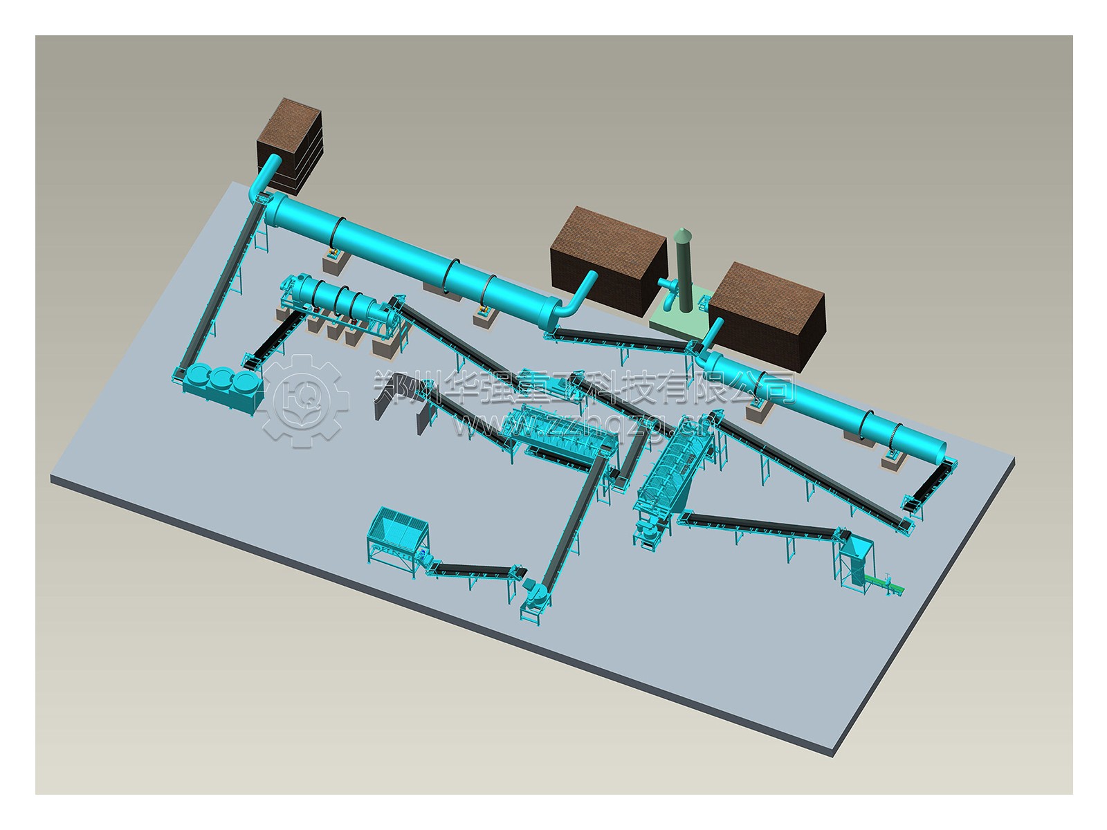 **,使用干燥設(shè)備降低肥料水分,并通過包裝設(shè)備完成產(chǎn)品封裝。